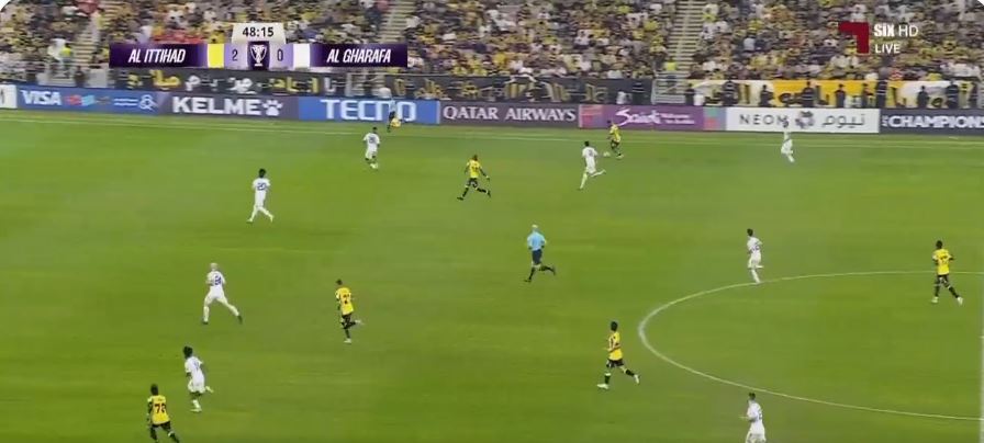وساهم الهدف في تعزيز ثقة لاعبي اتحاد جدة، الذين واصلوا الضغط على دفاعات الفريق القطري، معتمدين على الانتشار الجيد في وسط الملعب والربط السلس بين الخطوط، بينما حاول الغرافة إعادة ترتيب صفوفه والعودة إلى أجواء اللقاء عبر الهجمات المرتدة، إلا أن التنظيم الدفاعي لأصحاب الأرض حدّ من خطورته خلال فترات طويلة من مباراة الاتحاد ضد الغرافة.