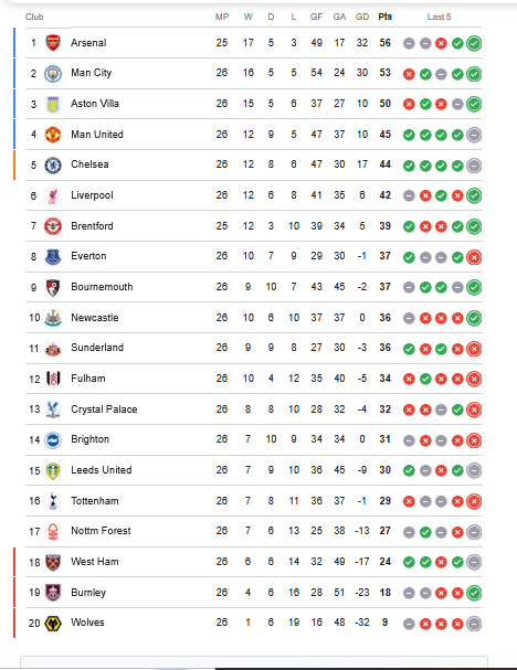 - جدول ترتيب الدوري الإنجليزي الممتاز