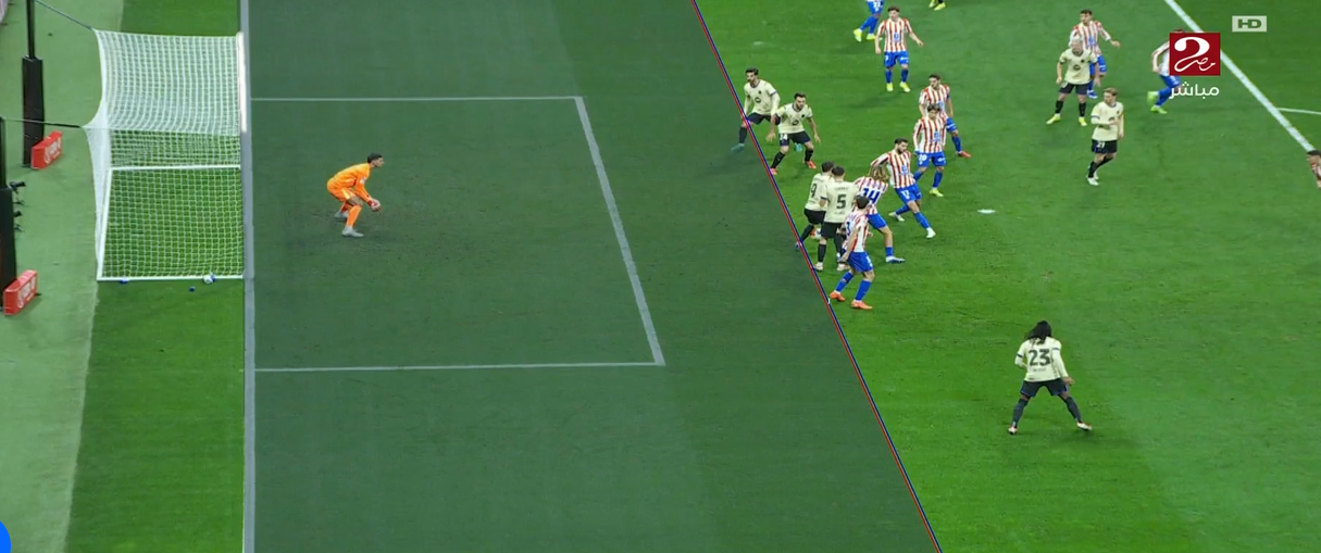 وكان هناك انتظار كبير لحكم المباراة من أجل اعتماد الهدف والذي تم إلغائه بسبب التسلل وتستمر النتيجة بتفوق أتلتيكو برباعية مقابل لا شيء.