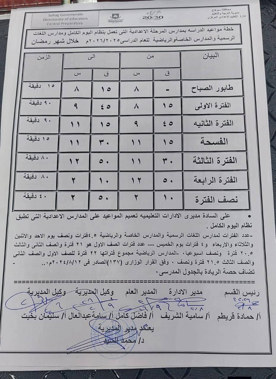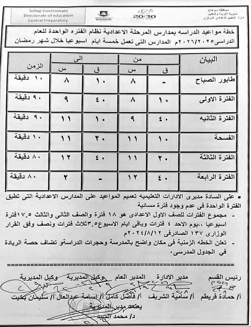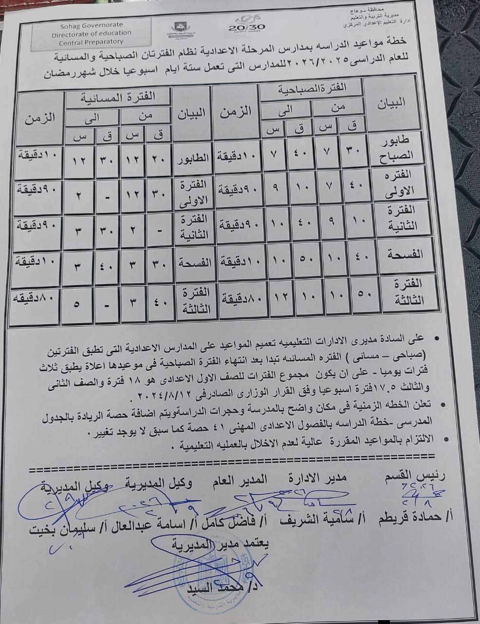وشددت التعليمات الرسمية على تعميم هذه مواعيد الدراسة في شهر رمضان 2026 على جميع المدارس الإعدادية التي تطبق نظام الفترة الواحدة، مع التأكيد على:
