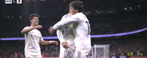 وجاء الهدف الأول سريعًا عن طريق جونزالو الذي استغل عرضية متقنة من زميله ترينت ألكسندر آرنولد، ليقابل الكرة بلمسة مباشرة من داخل منطقة الجزاء ويضعها في الشباك بطريقة رائعة، معلنًا تقدم أصحاب الأرض مبكرًا وسط فرحة كبيرة في المدرجات. الهدف المبكر أربك حسابات الضيوف، وأجبرهم على تعديل خطتهم سريعًا لمحاولة العودة إلى أجواء المباراة وعدم منح ريال مدريد فرصة فرض سيطرته الكاملة.
