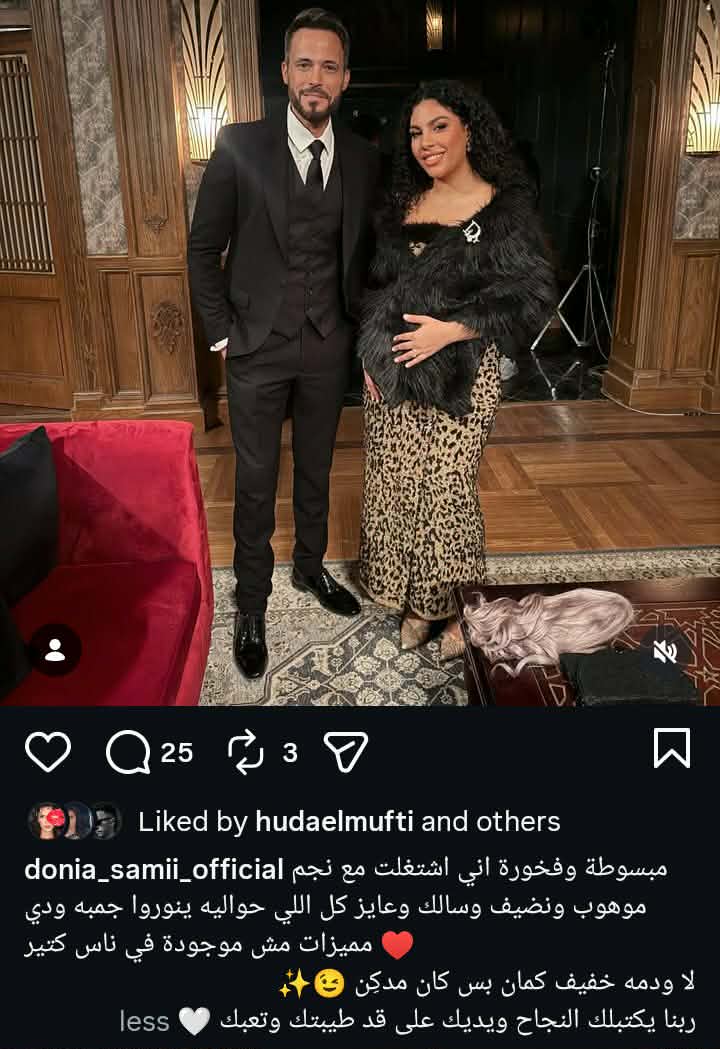 نشرت دنيا سامي صورة لها رفقة الفنان يوسف الشريف على حسابها الرسمي بموقع تبادل الصور والفيديوهات انستجرام، في منشور رصده موقع تحيا مصر، وعلقت عليه، قائلة: "مبسوطة وفخورة اني اشتغلت مع نجم موهوب ونضيف وسالك وعايز كل اللي حواليه ينوروا جمبه ودي مميزات مش موجودة في ناس كتير.. لا ودمه خفيف كمان بس كان مدين.. ربنا يكتبلك النجاح ويديك على قد طيبتك وتعبك".