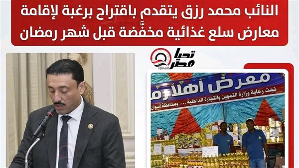 النائب محمد رزق يقدم اقتراحا برغبة لإقامة معارض السلع الأساسية بأسعار مخفضة قبل شهر رمضان