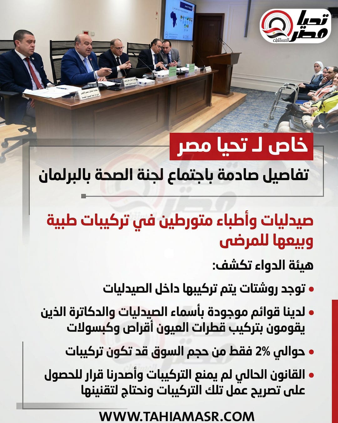 خاص لـ تحيا مصر| تفاصيل صادمة باجتماع لجنة الصحة.. صيدليات وأطباء يتورطون في تركيبات طبية وبيعها للمرضى