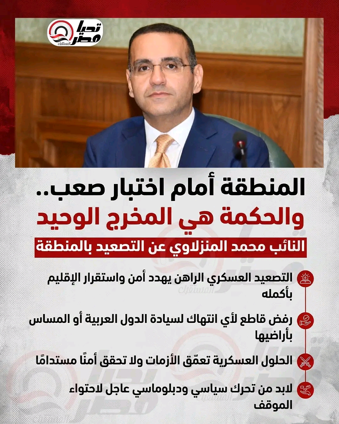 النائب محمد المنزلاوي: المنطقة لا تحتمل مغامرات عسكرية جديدة.. وضرورة تحرك دولي عاجل لاحتواء الأزمة