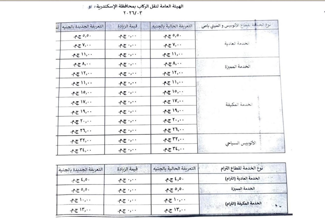 كما شكل لجنة لتعديل التعريفات وضعت في إعتبارها مسافة كل خط سير وعدد الرحلات تحقيقًا للعدالة، مشيراً إلى أن متوسط الزيادة من ١٤ إلى ١٧٪ بالنسبة لسيارات السيرفيس، أما عن أسعار تعريفة الركوب في وسائل النقل العام والنقل الجماعي، ووسائل النقل البديلة للترام لم تتغير، على أن يتم إعلان التعريفات الجديدة وتعليقها بكافة المواقف و بصورة واضحة.