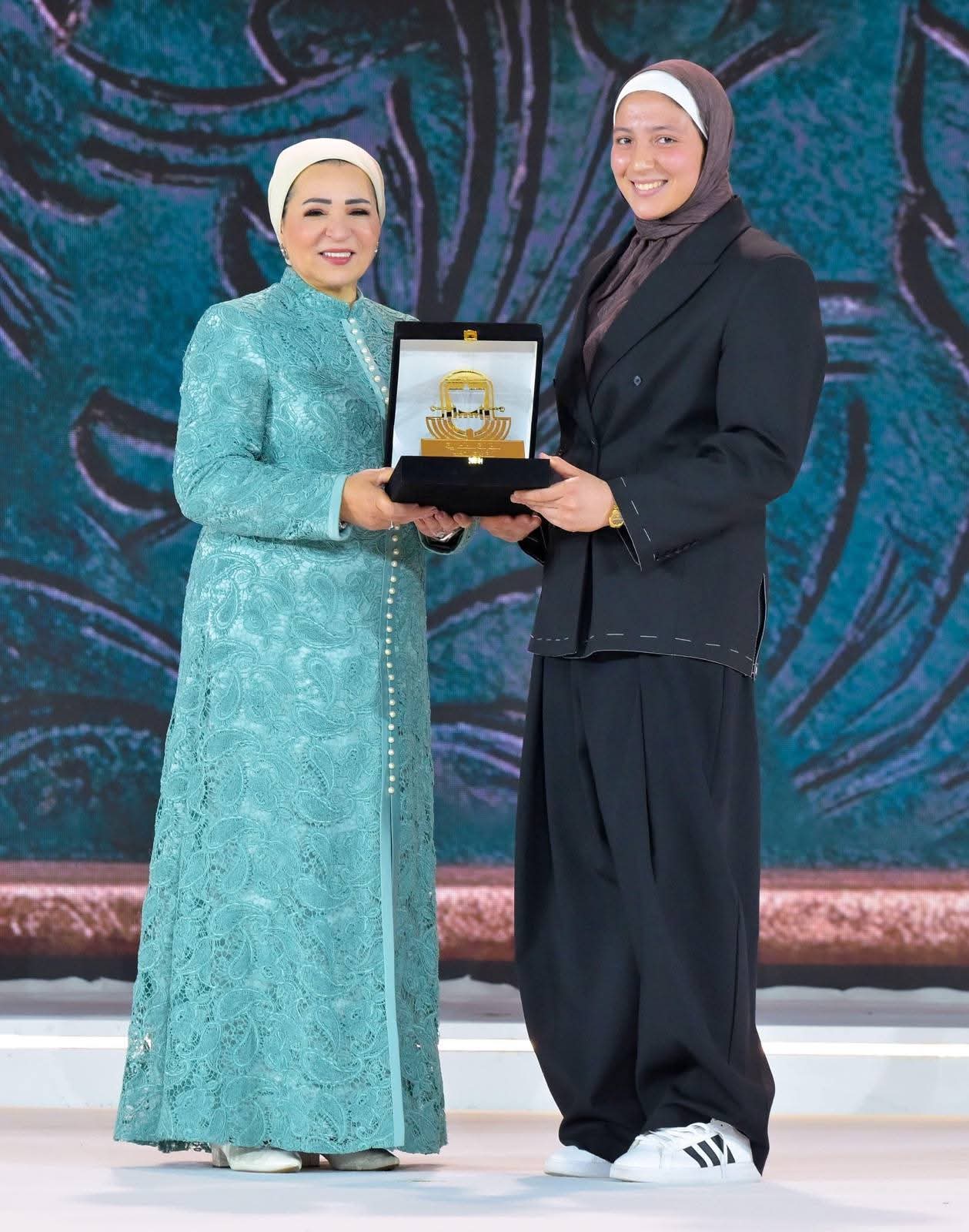 السيدة انتصار السيسي تكرم بطلة الجودو صفا سليمان في يوم المرأة المصري
