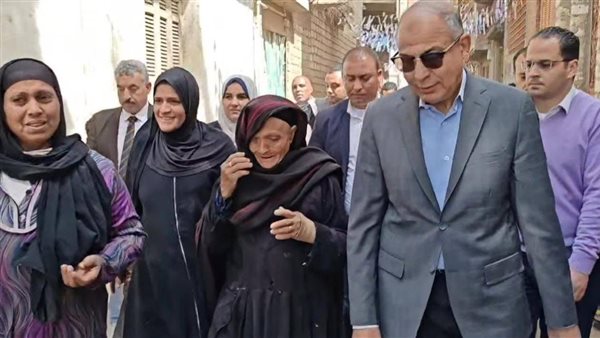 صورة بألف كلمة.. محافظ المنيا يجبر بخاطر سيدة مسنة