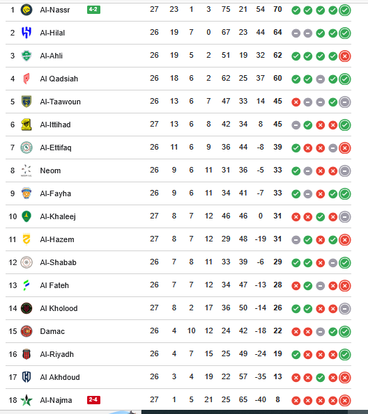 - ترتيب الدوري السعودي جدول ترتيب دوري روشن السعودي بعد فوز النصر على النجمة