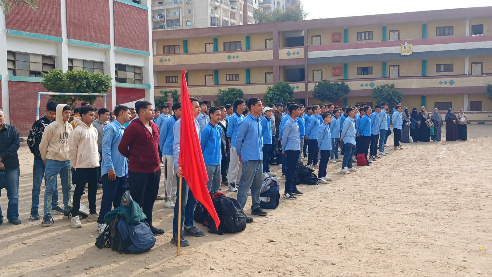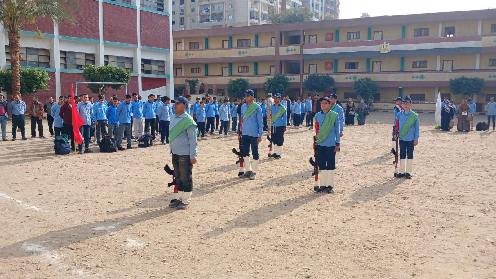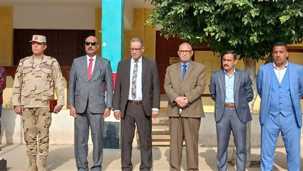 وكيل تعليم بني سويف وقائد قطاع التأسيس العسكري يتابعان طابور الصباح بمدرسة الشهيد أحمد الشناوي الصناعية بالواسطى ويؤكدان على الانضباط المدرسي