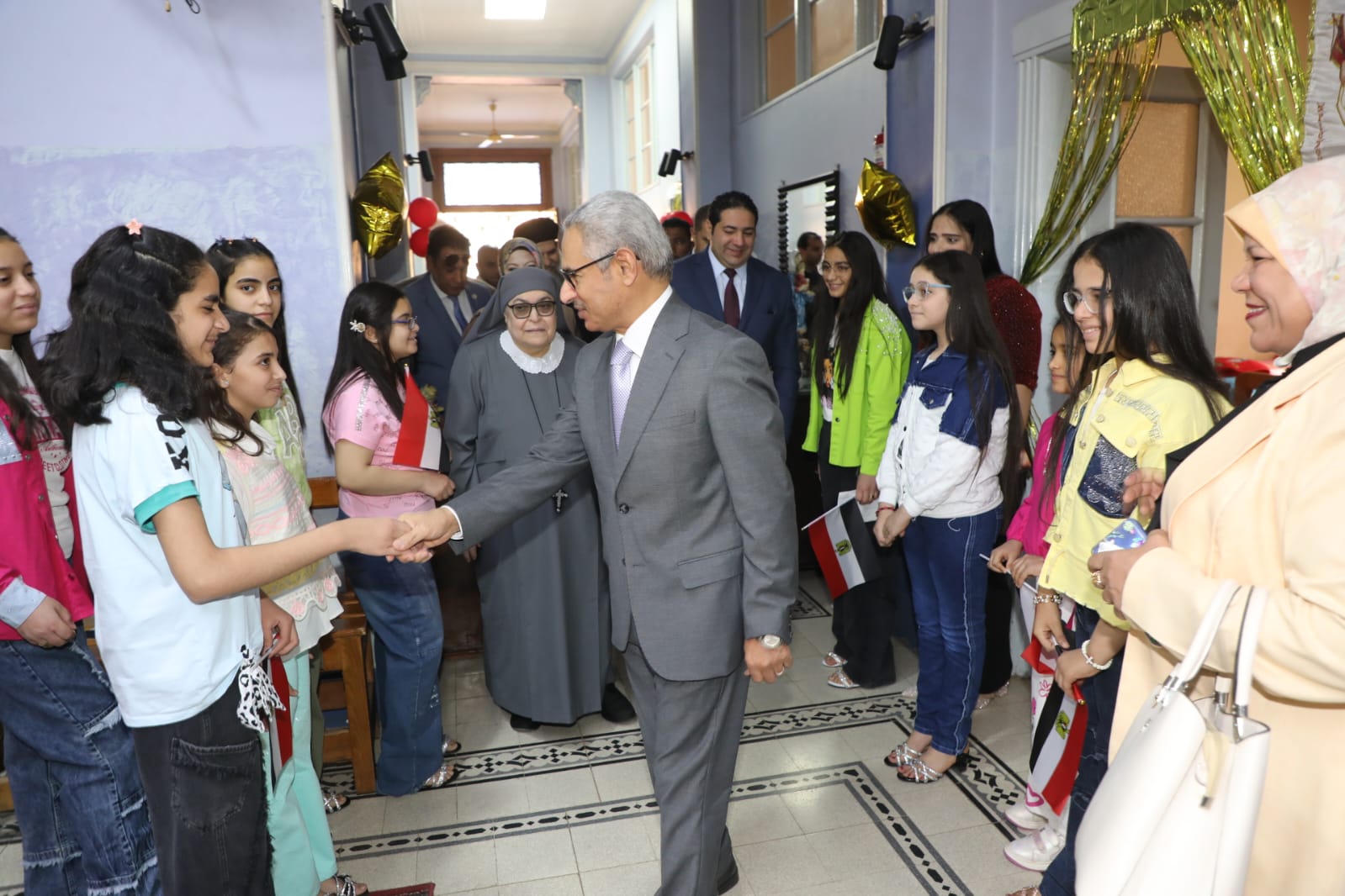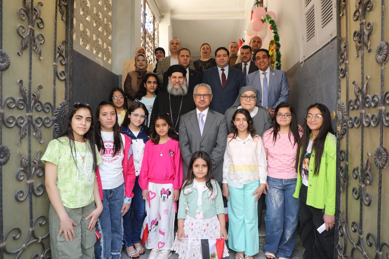 محافظ بني سويف يشارك أطفال دار "صديقات الكتاب المقدس" فرحتهم بعيد القيامة المجيد