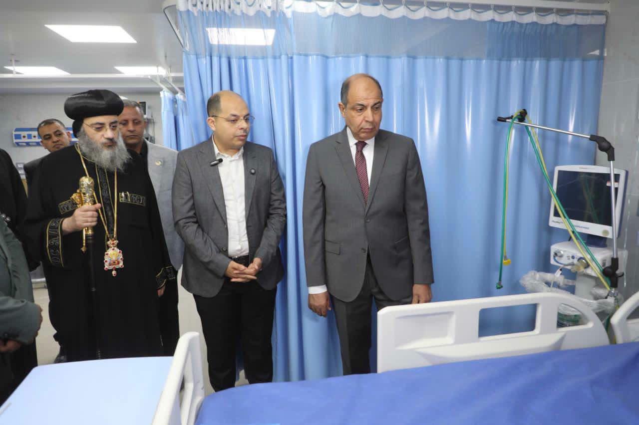 وكان في استقبال المحافظ نيافة الحبر الجليل الأنبا فلوباتير أسقف أبوقرقاص وتوابعها، والنائب احمد عبد المنعم، والدكتور بيتر أسعد مدير المستشفى، وعدد من الأطقم الطبية والإدارية.