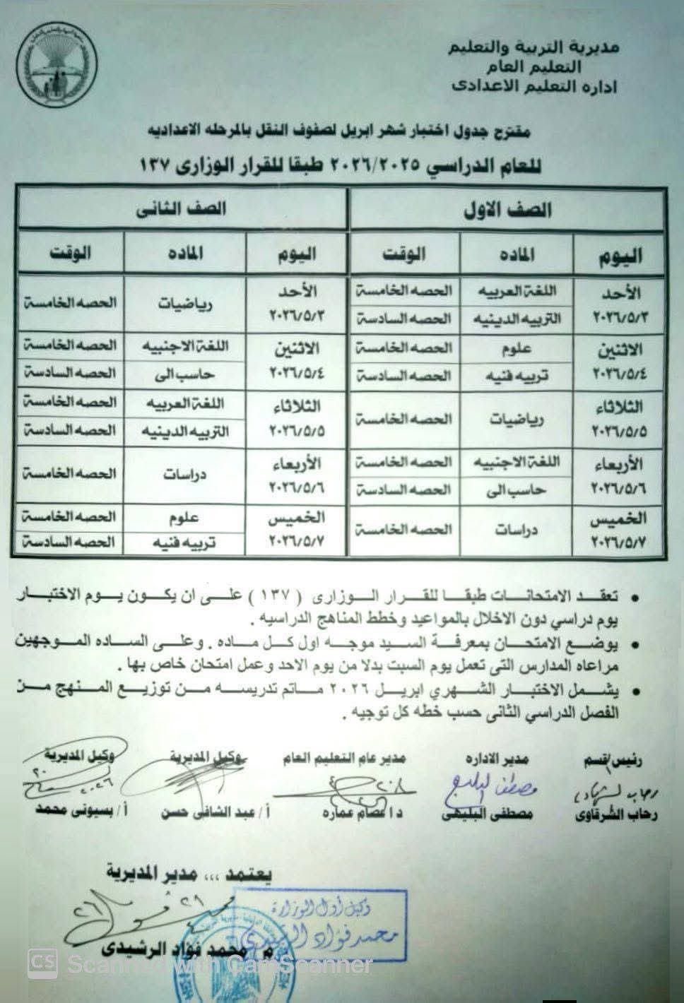 - جدول الصف الأول الإعدادي شهر أبريل الدقهلية