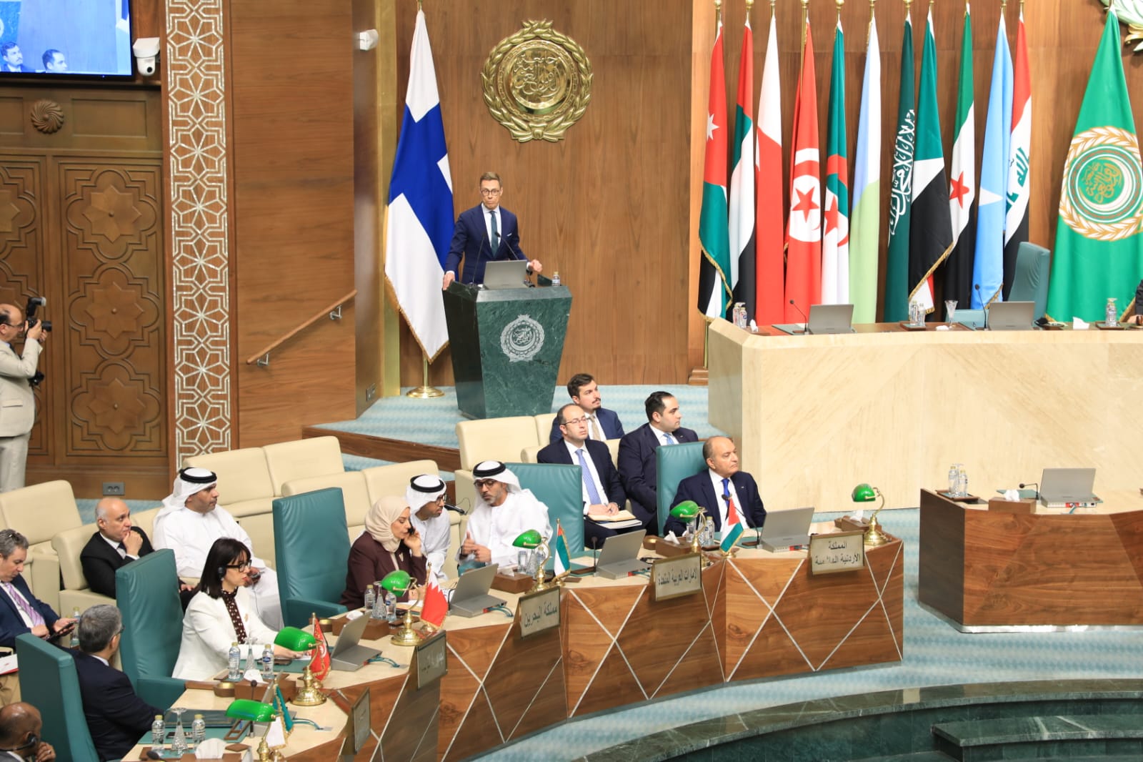 وأكد الرئيس الفنلندي أن بلاده تؤمن بأهمية العمل متعدد الأطراف، وتدعم الدور الذي تقوم به الجامعة العربية في تنسيق المواقف العربية وتعزيز الاستقرار الإقليمي، مثمناً خلال كلمته بجهود الدول العربية في معالجة الأزمات الإنسانية ودعم مسارات التنمية.