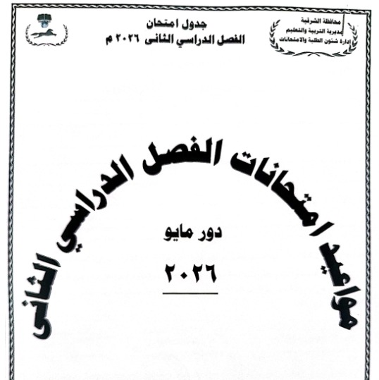 ومن جانبه أوضح الاستاذ محمد رمضان وكيل وزارة التربية والتعليم أن امتحانات الفصل الدراسى الثاني ( دور مايو ٢٠٢٦) ستعقد كالاتي:-