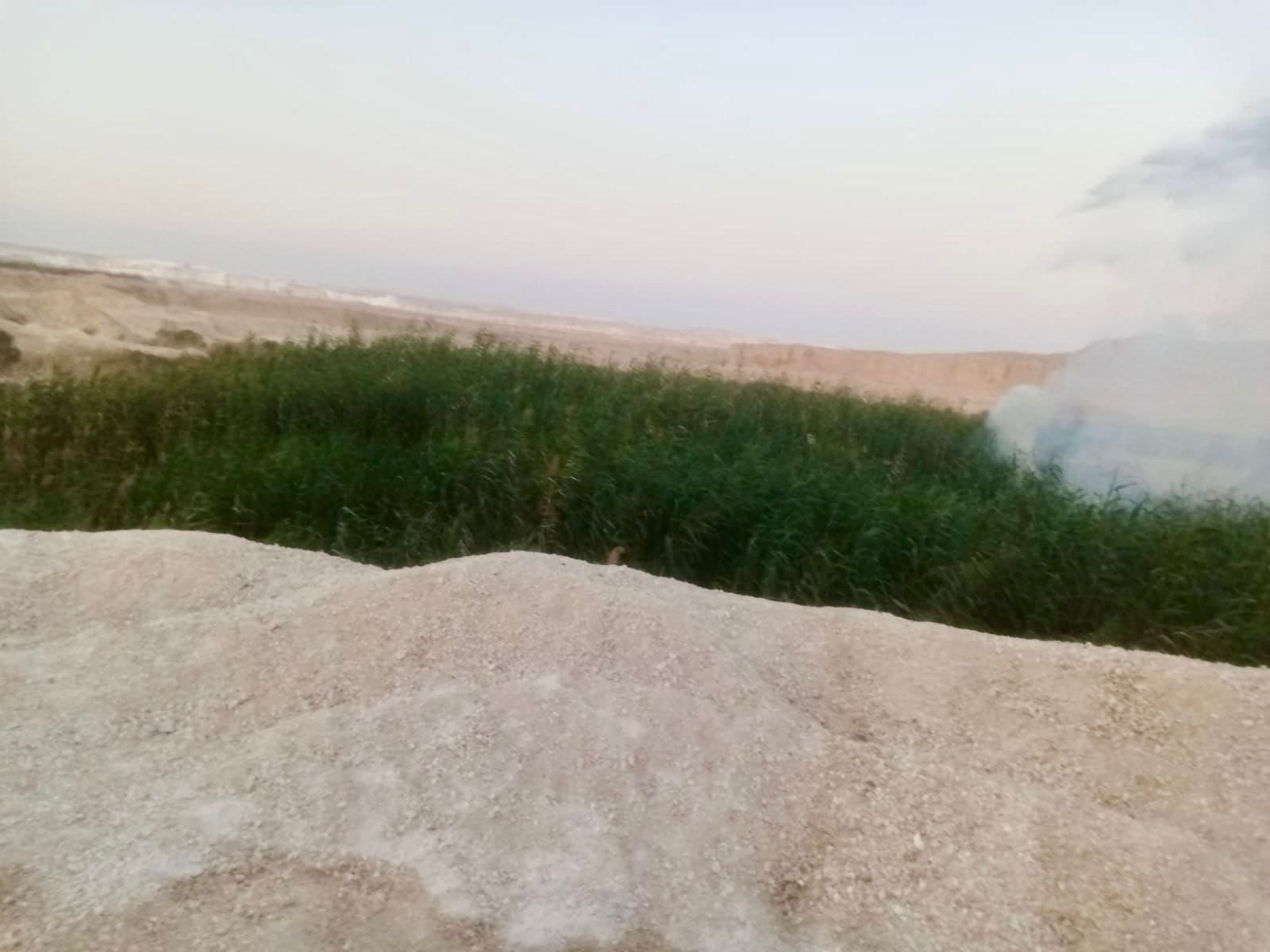 وفور وصول قوات الأمن لمعاينة موقع الحريق، تبين اشتعال النيران في منطقة حشائش جافة بمحيط منطقة مخلفات صرف صحي عشوائي، والتي يتم التخلص من مخلفات الصرف الصحي بالمنطقة.
