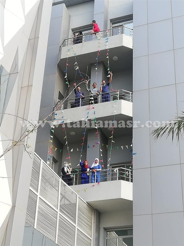 عمت الأجواء الرمضانية على أروقة المستشفى، وكذلك المبنى الخارجي، التي كللها الجيش الأبيض محاولين رفع الروح المعنوية في نفوس المرضى في الحجر الصحي.