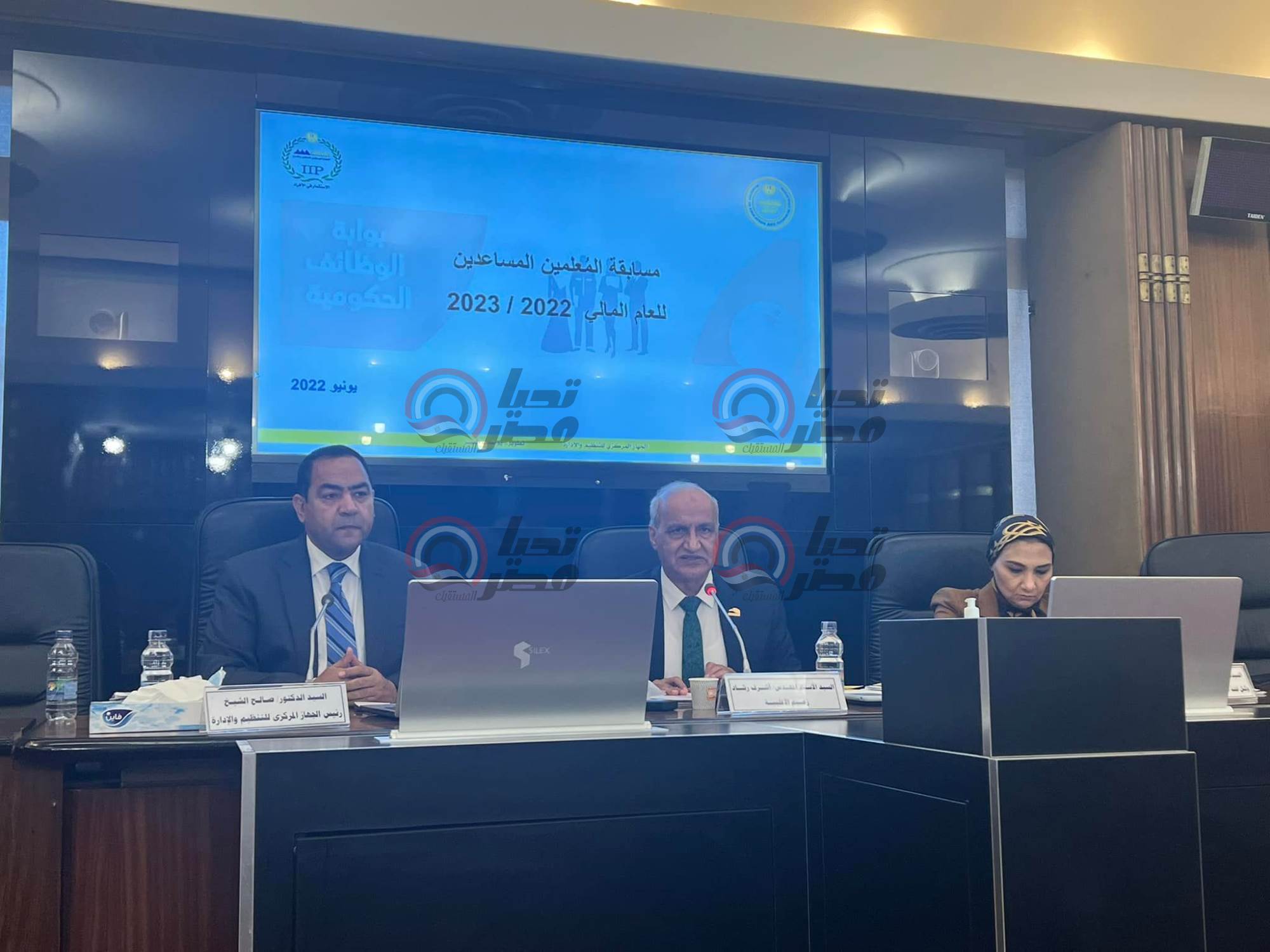 وأضاف أنه عقب ذلك قامت وزارة التربية والتعليم بتحديد شروط المسابقة، ثم قام الجهاز المركزي للتنظيم والإدارة بإعمال شئونه والتعاون مع الوزارة والمجلس الأعلى للجامعات وعدد من الخبراء المتخصصين بإعداد بنوك الأسئلة الخاصة بالمسابقة، وانتهى من إعداد الإجراءات التحضيرية للمسابقة، حتى صدرت موافقة رئاسة مجلس الوزراء بتاريخ 22 يونيو 2022 على تعديل أحكام اللائحة التنفيذية للباب السابع من قانون التعليم، الصادرة بقرار رئيس مجلس الوزراء رقم ٤٢٨ لسنة ٢٠١٣، لتمكين الجهاز المركزي للتنظيم والإدارة من إجراء المسابقة وصدر تعديل اللائحة بموجب قرار رئيس الوزراء رقم بتاريخ ٢٧ يونيو ٢٠٢٢.