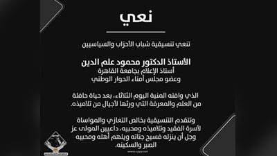 التنسيقية تهنئ النائبين أميرة العادلي ومحمد إسماعيل لاختيارهما عضوين بلجنة القيم واللجنة العامة لمجلس النواب