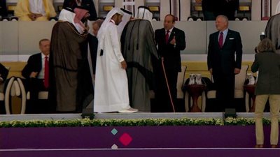 وتصافح الرئيس المصري عبد الفتاح السيسي ونظيره التركي رجب طيب أردوغان، وذلك للمرة الاولى بحضور أمير قطر الشيخ تميم بن حمد، على هامش حضورهما حفل افتتاح كأس العالم المنعقد فى العاصمة القطرية الدوحة.