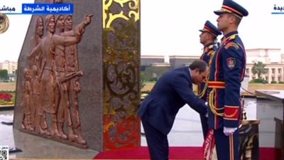 ووضع الرئيس عبد الفتاح السيسي، إكليلاً من الزهور على النصب التذكاري بأكاديمية الشرطة.