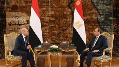 الرئيس السيسي يستقبل رئيس مجلس القيادة الرئاسي بالجمهورية اليمنية
