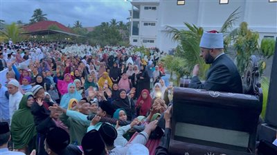 وكان عشرات الآلاف من أهالي مدينة لومبوك الإندونيسية، استقبلوا الدكتور أسامة الأزهري، مستشار رئيس الجمهورية للشئون الدينية، استقبالًا جماهيريًا حاشدًا، حيث حملوه على الأعناق، وأنشدوا وهم يسيرون أمامه ومن حوله ومن خلفه: «طلع البدر علينا».