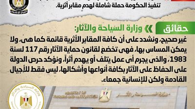 وقام المركز الإعلامي لمجلس الوزراء بالتواصل مع وزارة السياحة والآثار، والتي نفت تلك الأنباء، مُؤكدةً أنه لا صحة لتنفيذ الحكومة حملة شاملة لهدم مقابر أثرية، مُشددةً على أن كافة المقابر الأثرية قائمة كما هي، ولا يمكن المساس بها، فهي تخضع لقانون حماية الآثار رقم ١١٧ لسنة ١٩٨٣، والذي يجرم أي عمل يتلف أو يهدم أثراً.