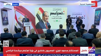 قال المستشار محمود فوزي رئيس الحملة الرسمية للمرشح الرئاسي عبد الفتاح السيسي ان الحملة أولت اهتماما بالمصريين بالخارج حيث عقدنا ٤٠لقاء عبر الفيديو كونفرانس مع مصريين في الخارج مؤكدا إن الدولة لم تدخر جهدا لربط المصريين في الخارج بوطنهم الأم داعيا المصريين بالخارج للنزول والمشاركة بكثافة في الانتخابات الرئاسية