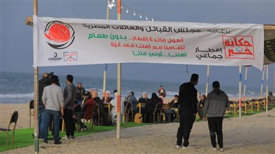 على جانب آخر، نظم مجلس القبائل والعائلات المصرية، أطول مائدة إفطار على ساحل مدينة العريش، اليوم الجمعة الموافق 29 من شهر مارس الجاري، «بدون طعام»، وذلك تضامنًا مع الشعب الفلسطيني في قطاع غزة والأحوال المعيشية الصعبة التي يتعرضون لها مع استمرار العدوان الإسرائيلي.