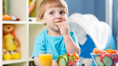 5. الحد من الوجبات الخفيفة والمشروبات السكرية، تشجيع اتباع نظام غذائي متوازن مع الكثير من الفواكه والخضروات ومنتجات الألبان والماء.
