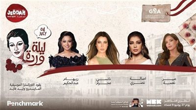 وعلى الجانب الآخر، تم اعداد مجموعة من الليالي لتكريم عدد من نجوم الفن العظيم، ومن المقرر أن يقوم بإحياء حفل ليلة وردة عدد كبير من المطربات، وهن: أصالة، نانسي عجرم، ريهام عبد الحكيم، وعبير نعمة، بقيادة المايسترو وليد فايد على الأوركسترا الموسيقية، وستقام الحفل على خشبة مسرح عبادي الجوهر أرينا، في افتتاح كبير ومذهل لكل الحضور.