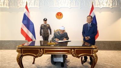 من جانبه، أعرب شيخ الأزهر عن تقديره لمملكة تايلاند قيادةً وشعبًا، مشيدًا بالطلاب التايلانديين الذين يدرسون بالأزهر الشريف، مؤكدًا استعداد الأزهر لزيادة عدد المنح الدراسية المقدمة لهم، وزيادة أعداد المبعوثين الأزهريين إلى تايلاند، بالإضافة إلى حرص الأزهر الشريف على تكثيف دورات تدريب الأئمة التايلانديين لتأهيلهم على التَّعامل مع التَّحديات والقضايا التي تهم مجتمعاتهم بما يتناسب مع طبيعة المجتمع التايلاندي، مشيرًا إلى استعداد الأزهر الشريف لإنشاء مركز لتعليم اللغة العربية في تايلاند.