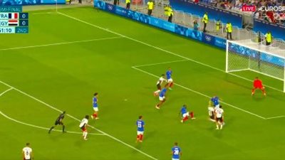 شهدت الدقائق الأولى من الشوط الأول الإضافي، طرد مدافع منتخب مصر الأولمبي عمر فايد، بعد تدخل قوي على مهاجم المنتخب الفرنسي، ومحاولة عرقلته، ليتحصل على الإنذار الثاني في المباراة، وبالتالي الطرد، تواصل ضغط منتخب فرنسا على دفاعات المنتخب الأولمبي، من أجل استغلال حالة النقص العددي، وهو ما تحقق بعد أن تمكن المتألق ماتيتا من إضافة الهدف الثاني برأسية متقنة على يسار حمزة علاء في الدقيقة 100 من عمر اللقاء.