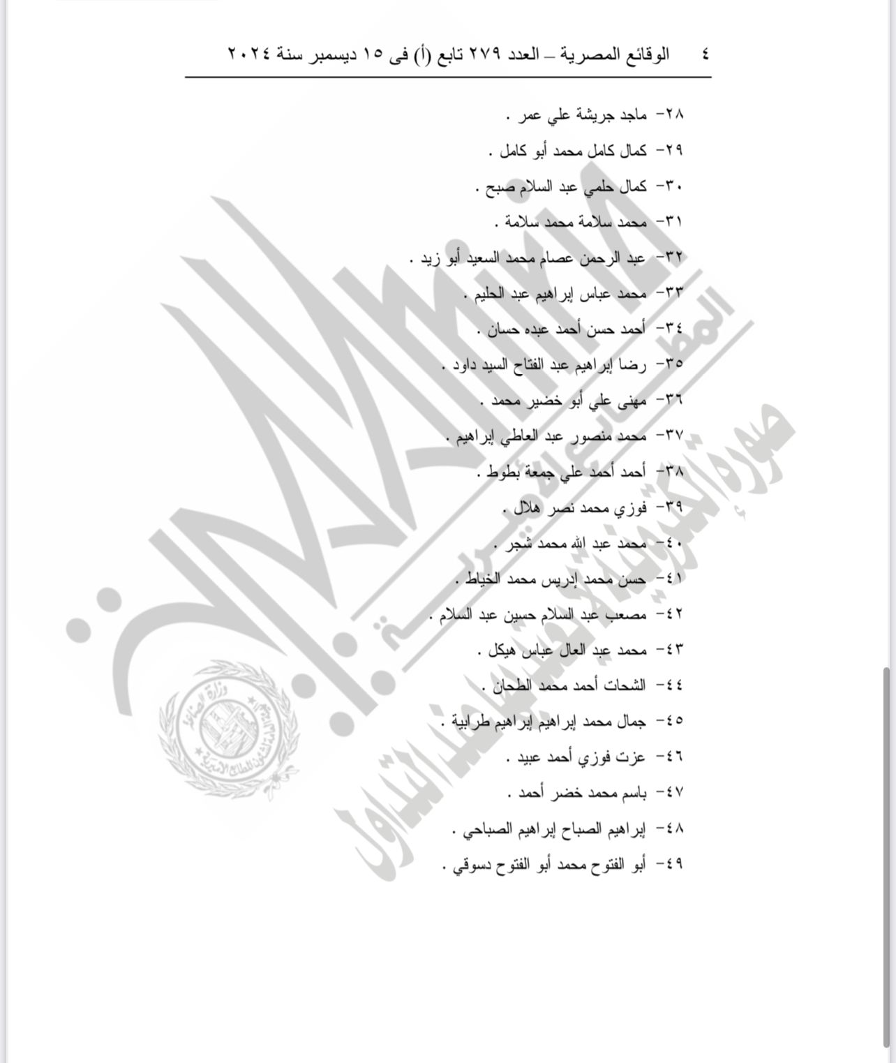 وحصل موقع تحيا مصر على نسخة من الحكم المنشور في الجريدة الرسمية، وجاءت أسماء من أدرجوا بقوائم الإرهاب، كالتالي: