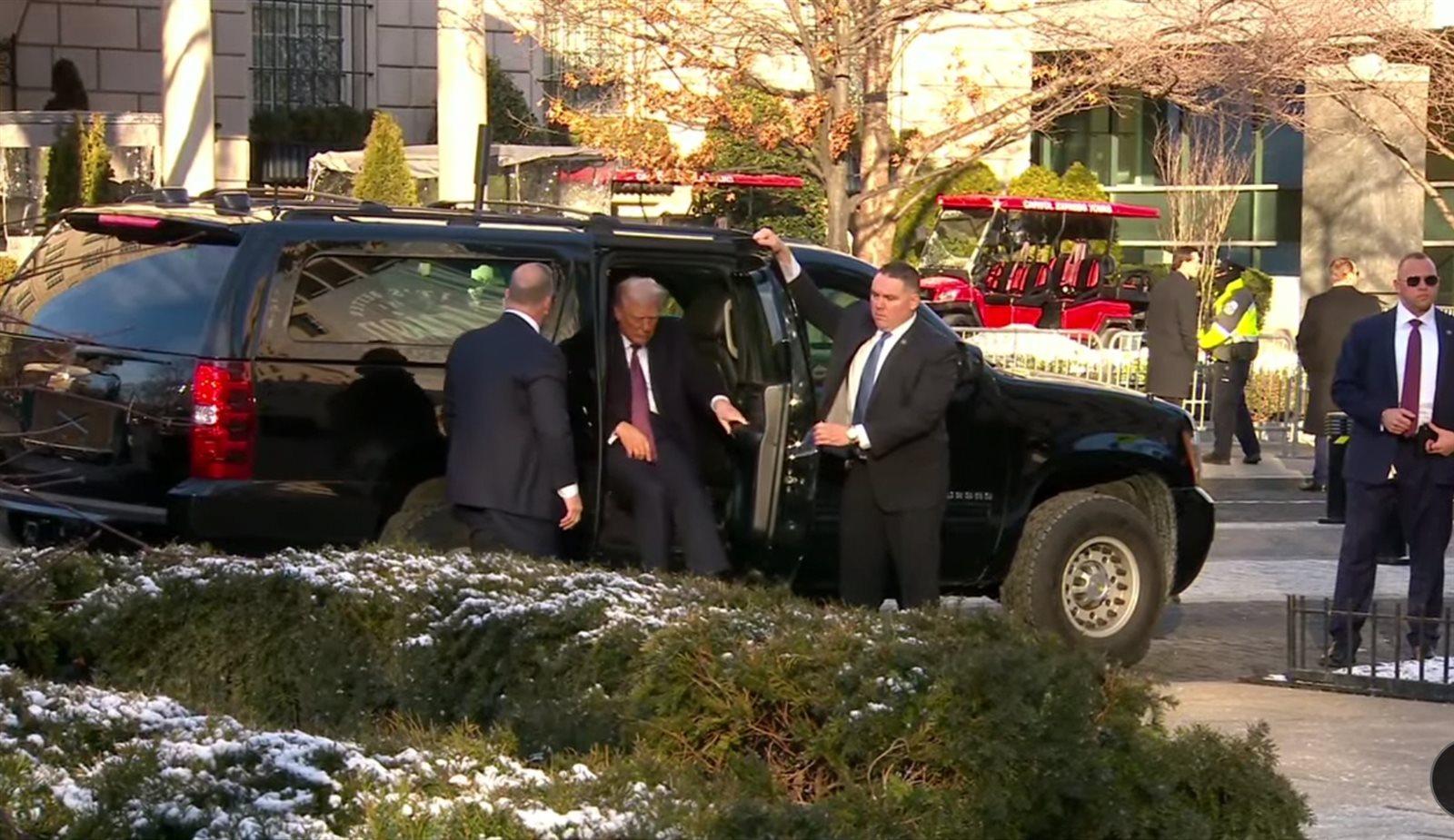 وذكرت صحيفة "نيويورك بوست" انطلق موكب ترامب بعد خروجه من بلير هاوس، مقر إقامة الرئيس الرسمي، بعد الساعة 8.30 صباحًا.