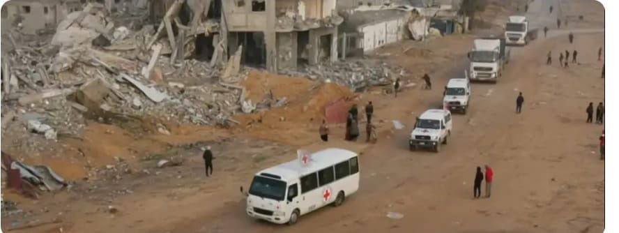«وسط الأنقاض».. مركبات الصليب الأحمر تبدأ بالدخول إلى غزة استعداداً لاستلام الأسيرات الأربع من حماس|صور