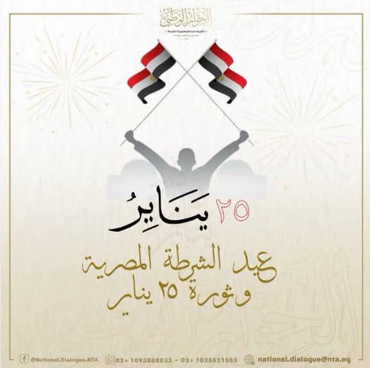 الحوار الوطني يهنئ الشعب المصري بمناسبة عيد الشرطة وذكرى ثورة 25 يناير