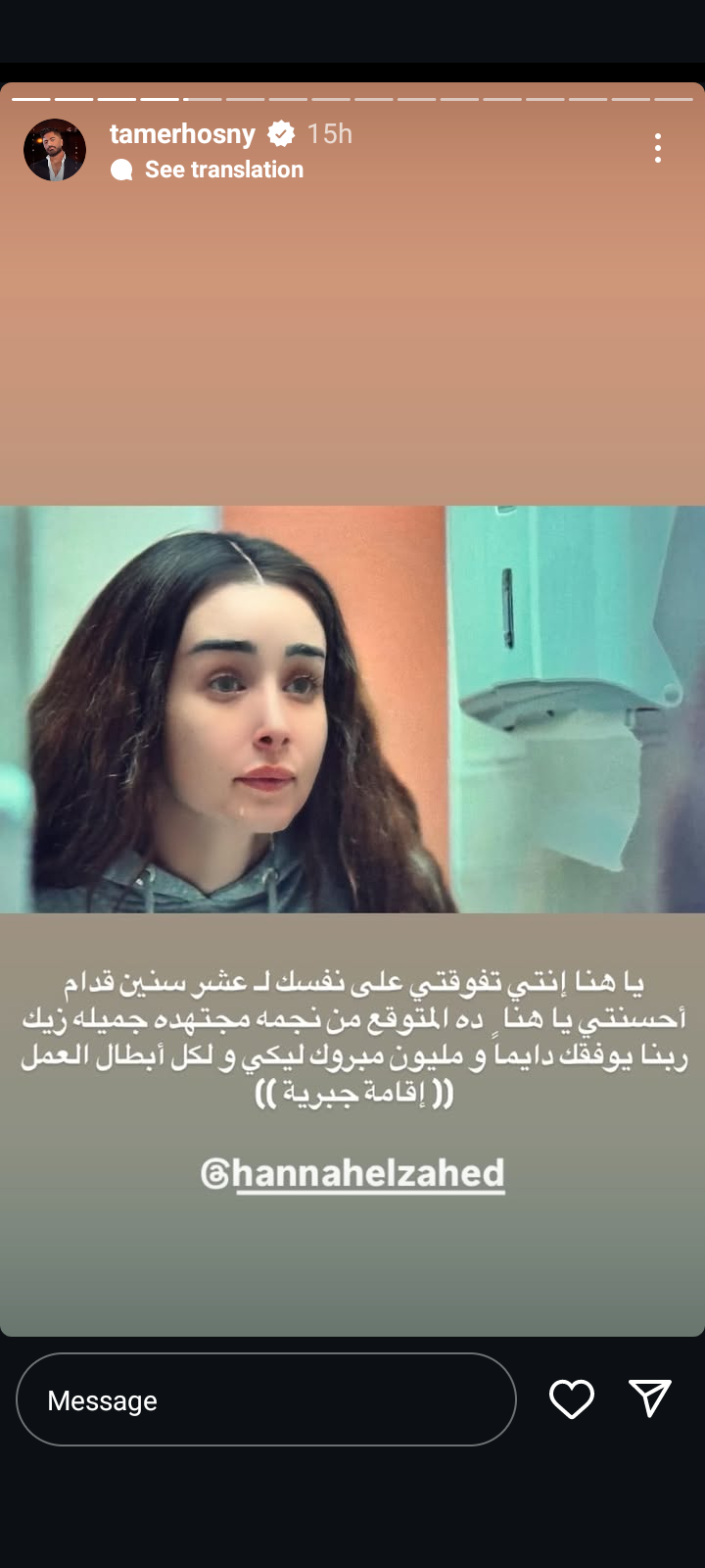 حرص الفنان تامر حسني على الإشادة بأداء الفنانة هنا الزاهد في مسلسل إقامة جبرية والذي يعرض في الفترة الحالية على منصة watch it الرقمية وحقق نجاحات كبيرة خلال فترة عرضه وردود فعل إيجابية من قوية من قبل الجمهور.