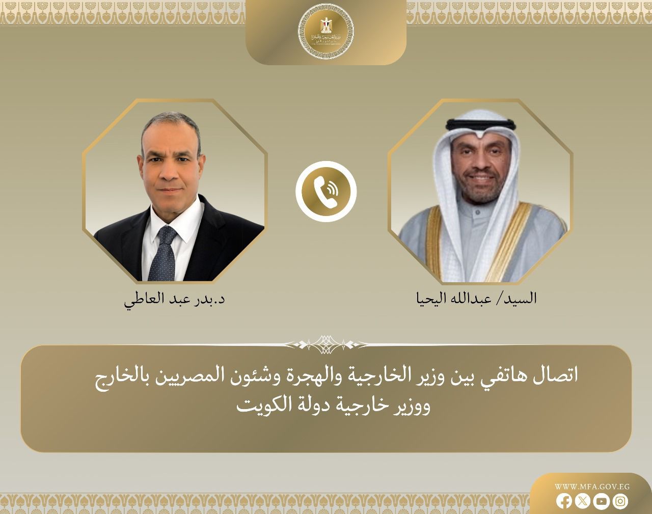 وجاء ذلك خلال مكالمة هاتفية، اليوم السبت، بين الوزير عبد العاطي، ووزير خارجية دولة الكويت عبد الله اليحيا.