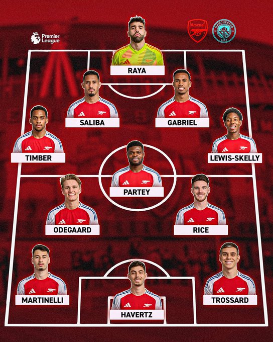 التشكيل الرسمي لنادي أرسنال أمام مانشستر سيتي في الدوري الإنجليزي الممتاز