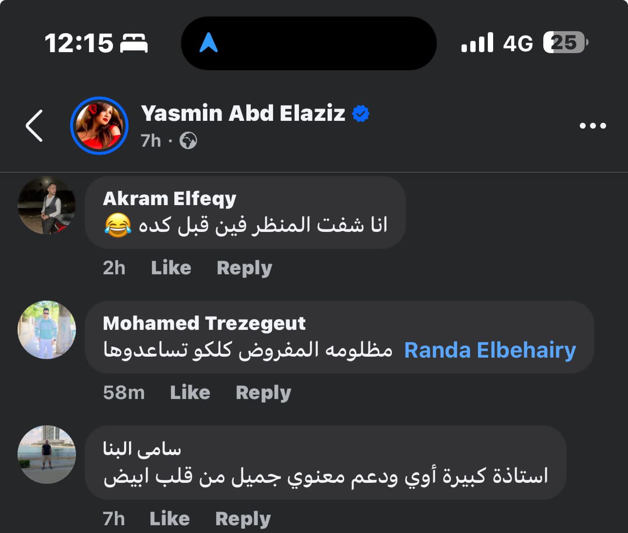 وكان من بين تلك التعليقات التي رصدها موقع تحيا مصر: "عقبال راندا البحيري يارب، راندا البحيري شغليها معاكي يا ياسمين ، راندا البحيري عاوزينها معاكي، شغلي راندا البحيري واقفي جنبها، شغلي راندا البحيري معاكي"."عايزين نرجع نشوف راندا البحيري علي الشاشة من تاني".