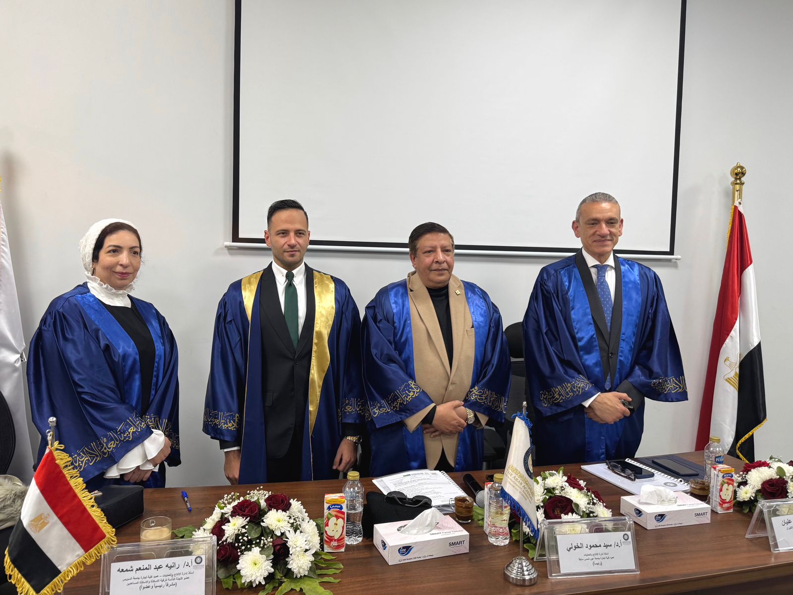 وتكونت لجنة المناقشة من دكتور رانيا شمعة، ودكتور سيد الخولي، وكابتن محمد عليان، رئيس مجلس إدارة شركة مصر للطيران للخطوط الجوية.