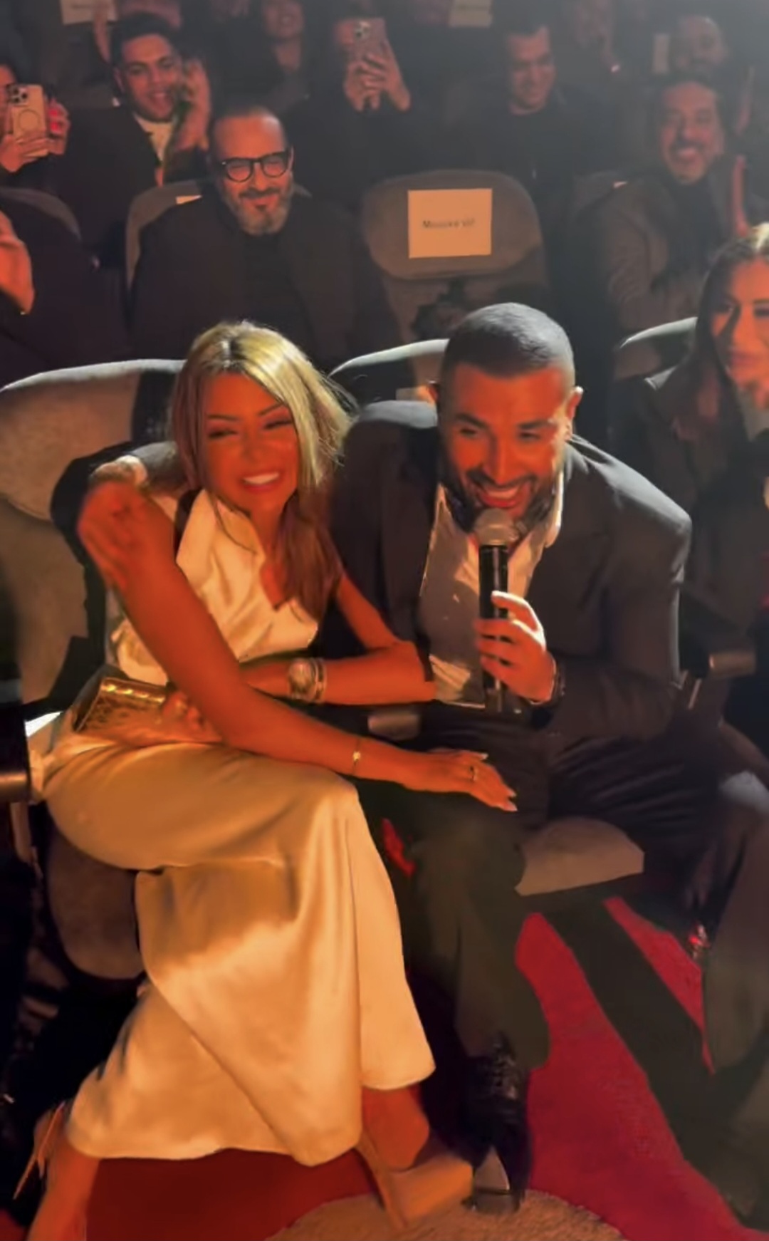 رومانسية أحمد سعد وزوجته علياء بسيوني في حفل إطلاق ألبومه الجديد