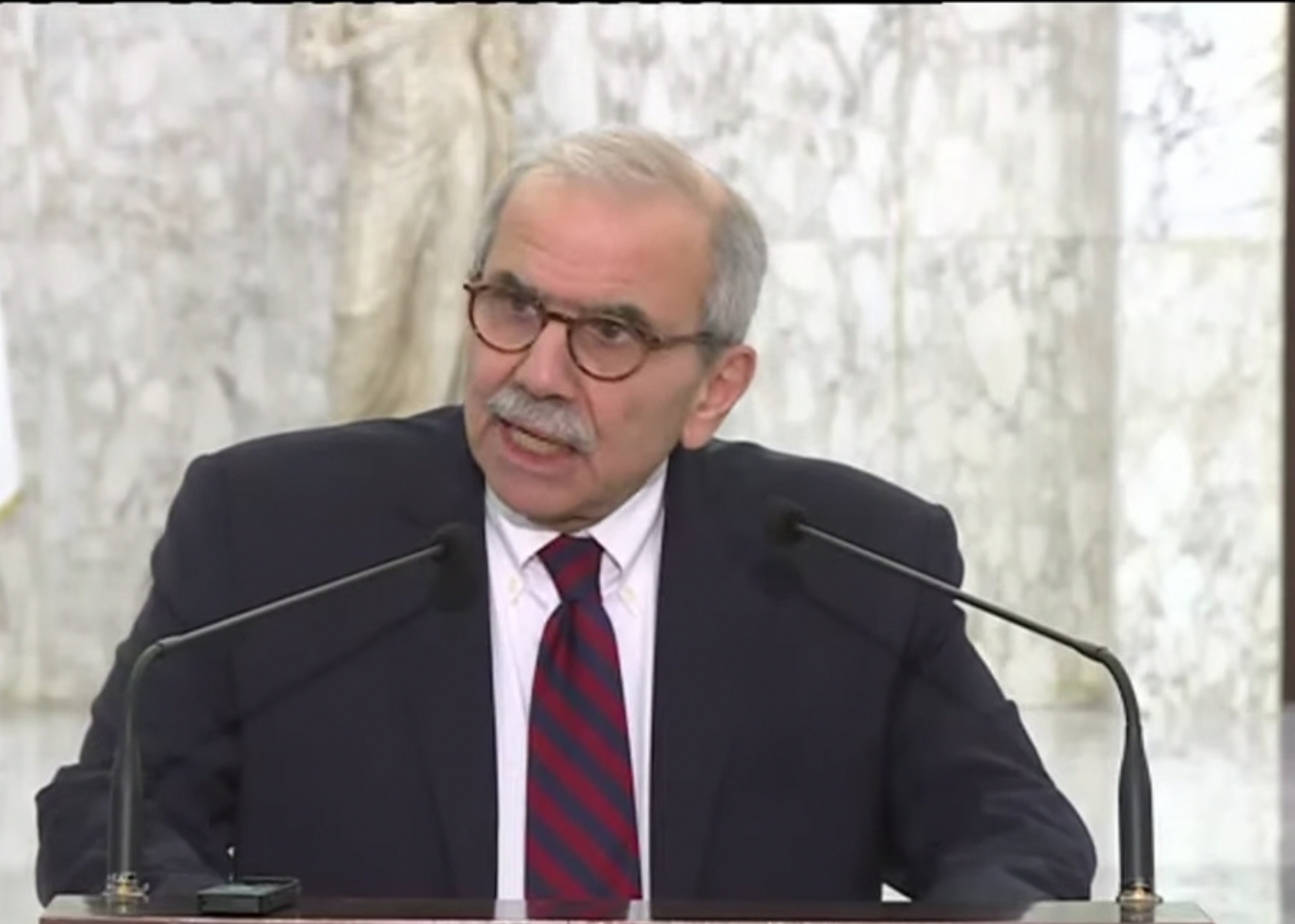وقال رئيس الوزراء اللبناني خلال كلمة له:" أضع نصب عيني إرساء القانون ودولة المؤسسات.. وأطلق مع الرئيس ورشة بناء لبنان الجديد".