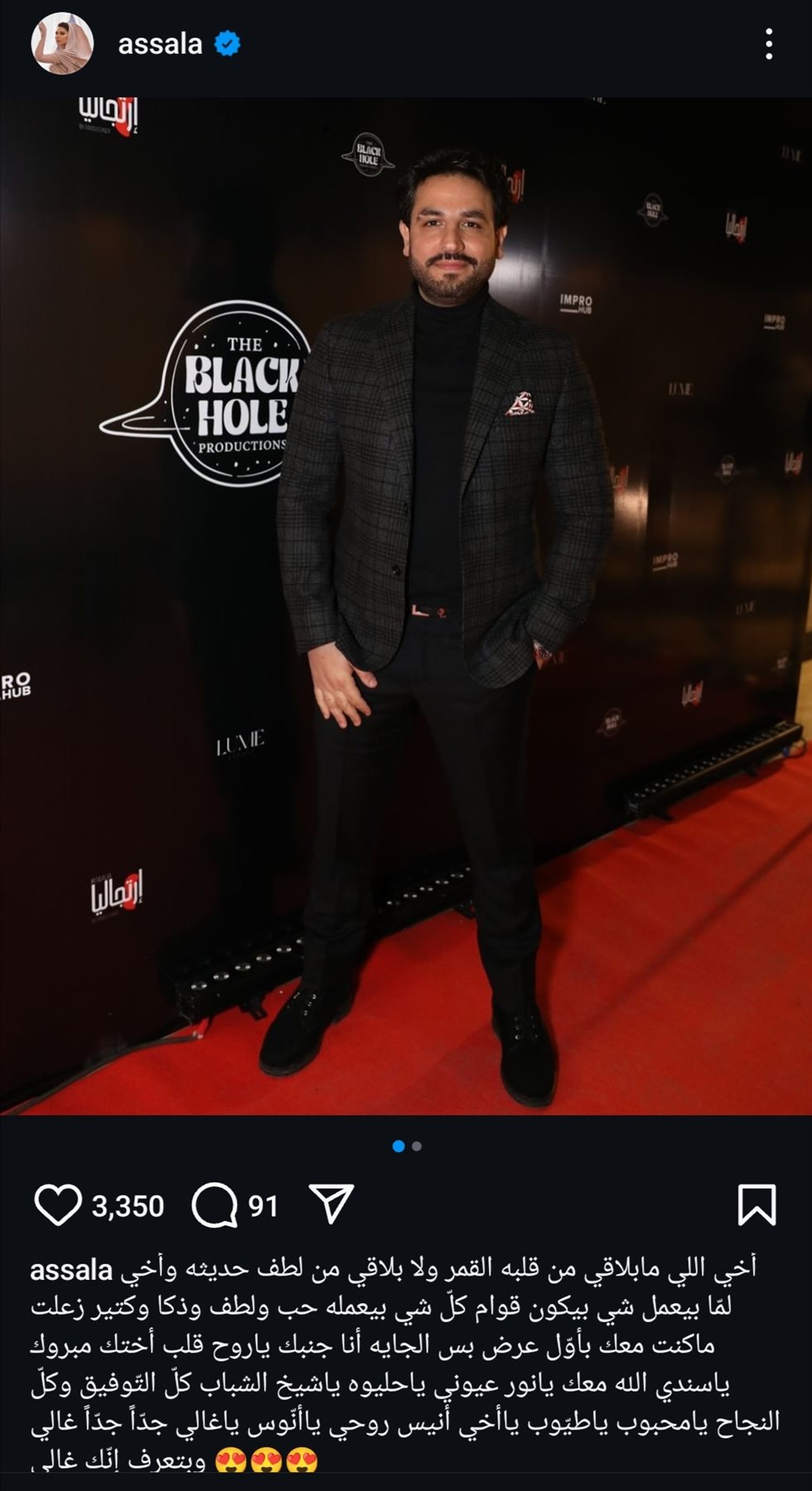 شاركت أصالة صور تجمع شقيقها أنس مع ابنتها شام الذهبي، وعلقت عليها موجهة له رسالة مؤثرة توضح مدى قوة العلاقة بينهما وحبها لشقيقها، كما وجهت له الاعتذار بسبب عدم حضورها عرض إرتجاليا الذي احتفل به شقيقها بحضور نجوم الفن، وكتبت أصالة في منشورها الذي يرصده موقع تحيا مصر: "أخي اللي ما بلاقي من قلبه القمر ولا بلاقي من لطف حديثه وأخي لما بيعمل شي بيكون قوام كل شي بيعمله حب ولطف وذكا وكتير زعلت ماكنت معك بأول عرض بس الجايه أنا جنبك ياروح قلب أختك مبروك ياسندي الله معك يانور عيوني يا حليوه ياشيخ الشباب كل التوفيق وكل النجاح يا محبوب ياطيوب يا أخي أنيس روحي يا أنوس يا غالي جداً جداً غالي ويتعرف إنك غالي".