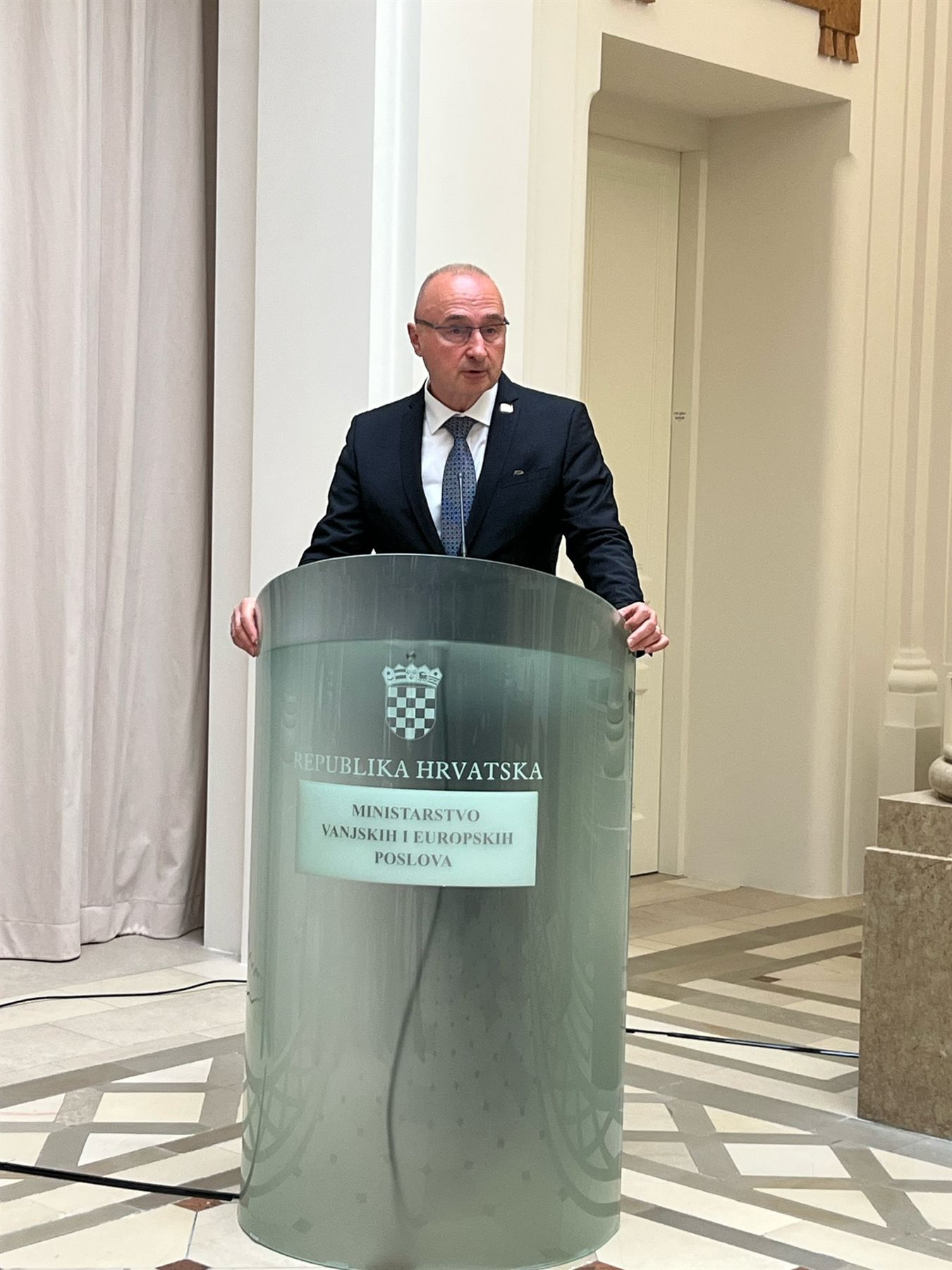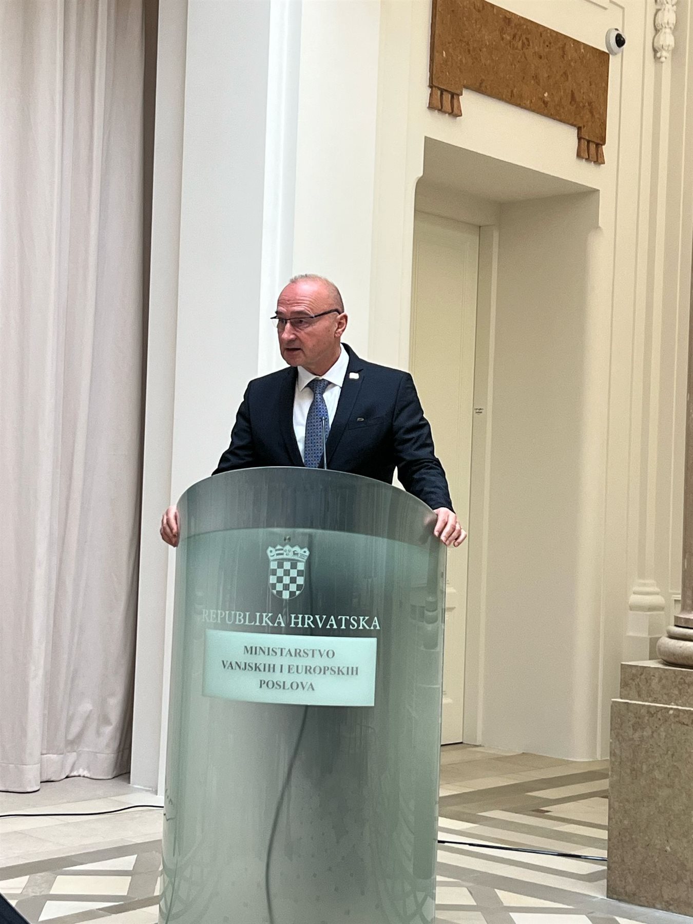 وألقى وزير الخارجية الكرواتي كلمة أسهب خلالها في عرض ما تمتع به السفير أيمن ثروت من سمات شخصية ومهنية متميزة، حيث وصفه بالدبلوماسي الأنشط والأكثر نجاحًا في كرواتيا منذ عقود، مشيرًا إلى أن دار سكن السفير المصري في زغرب كان قبلة لجميع المسئولين الكروات والأجانب في العاصمة الكرواتية.