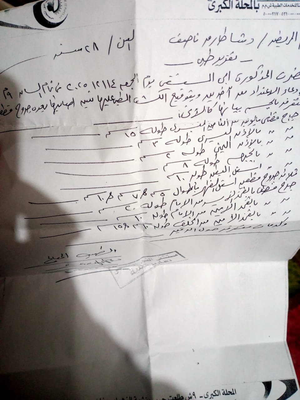 ننشر التقرير الطبى للزوجة المعتدى عليها من زوجها بالمحلة