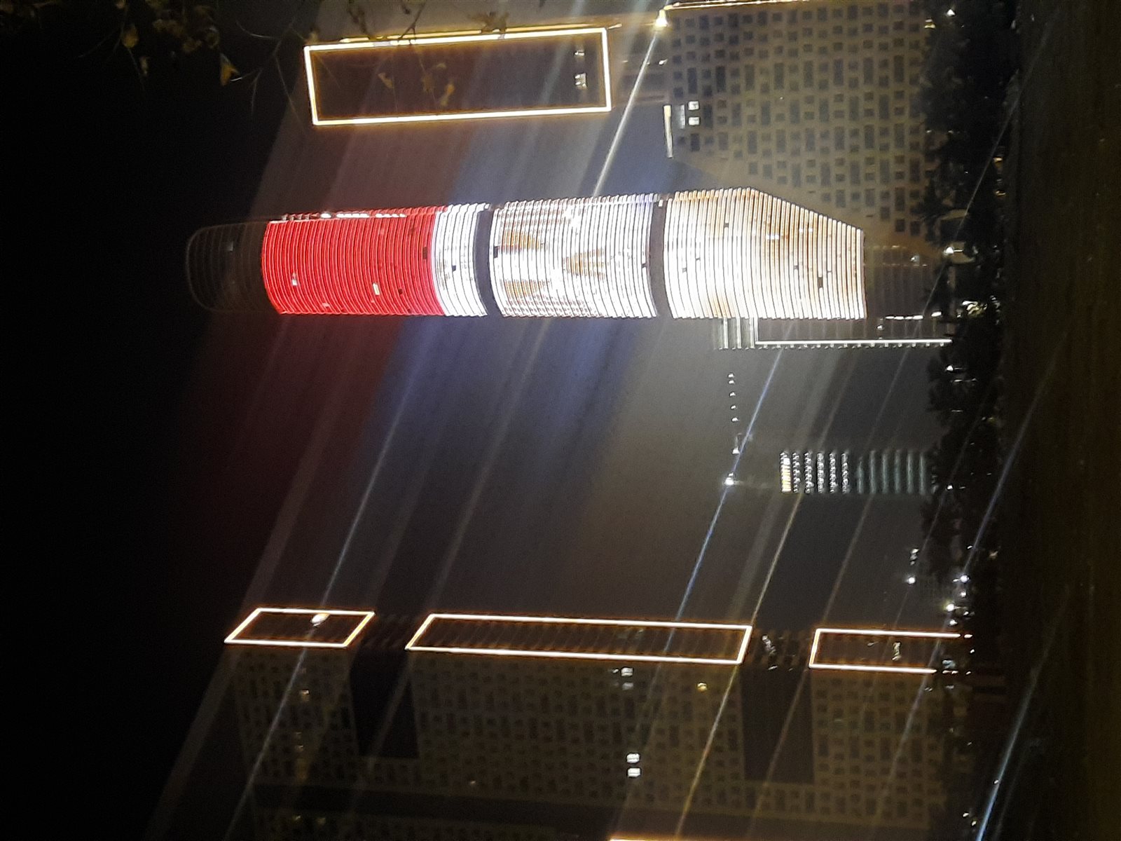 البرج الأيقوني يضئ بالعلم المصري والتركي
