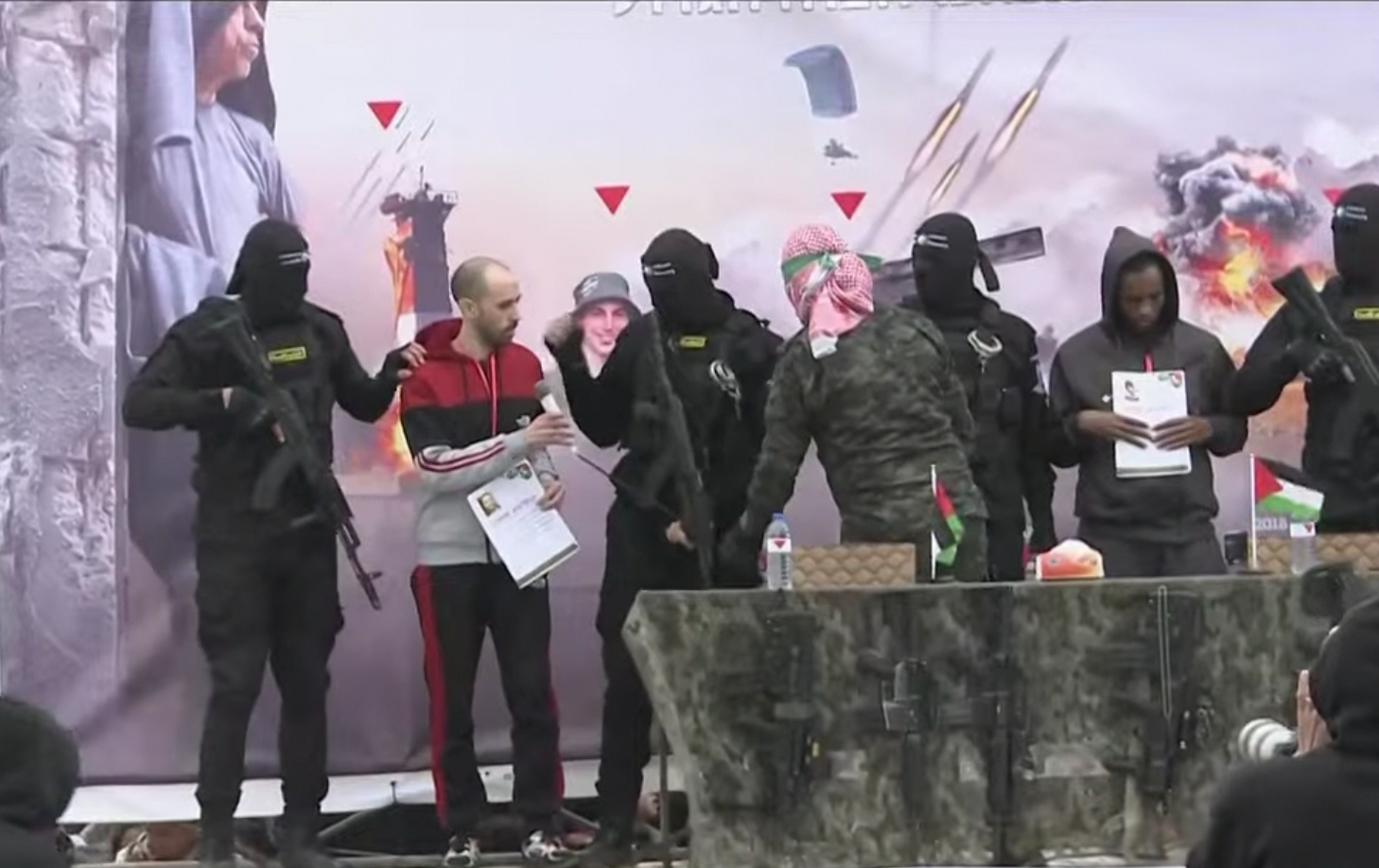 وبعد عملية تسليم اثنين من الأسرى، أعلن الجيش الإسرائيلي إن الصليب الأحمر أبلغ الجيش بأن حركة حماس سلمت الرهينتين تال شوهام وأفيرا منغيستو المفرج عنهما.